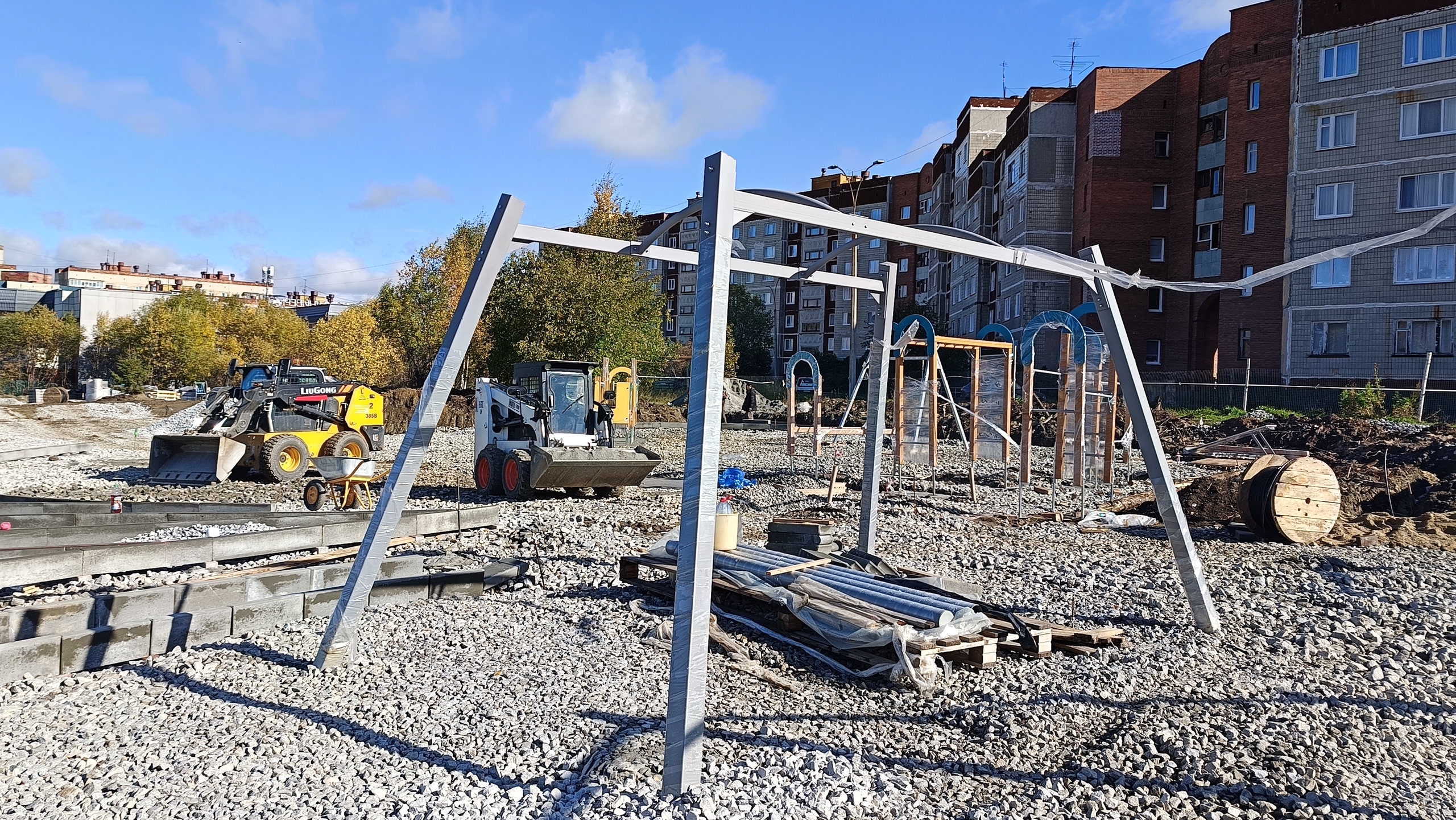 Динамика появилась: малые архитектурные формы смонтированы, установлен бортовой камень, подготовлены углубления для закладных под центральный элемент площадки – большой игровой «Дворец». На этой неделе строители обещают приступить к работам по асфальтированию. В дальнейшем, в соответствии с проектом, на детских игровых зонах будет уложено резиновое покрытие.