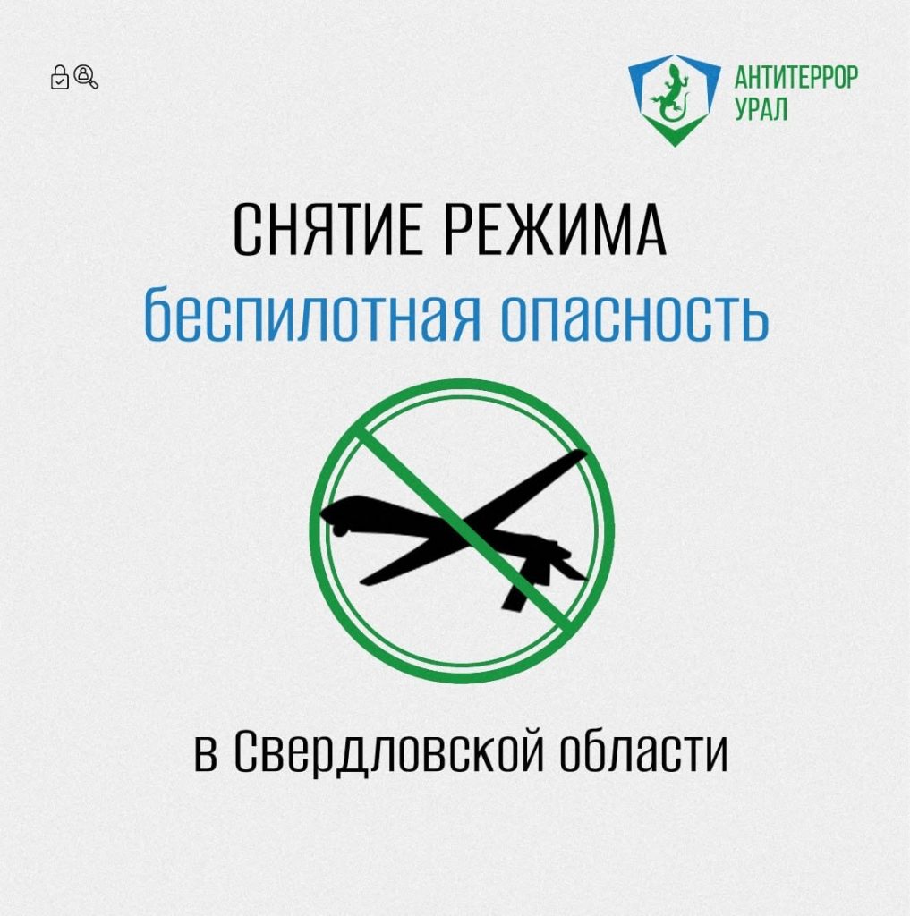 ⚡️В Свердловской области снят режим упреждающего реагирования на возможную атаку БПЛА