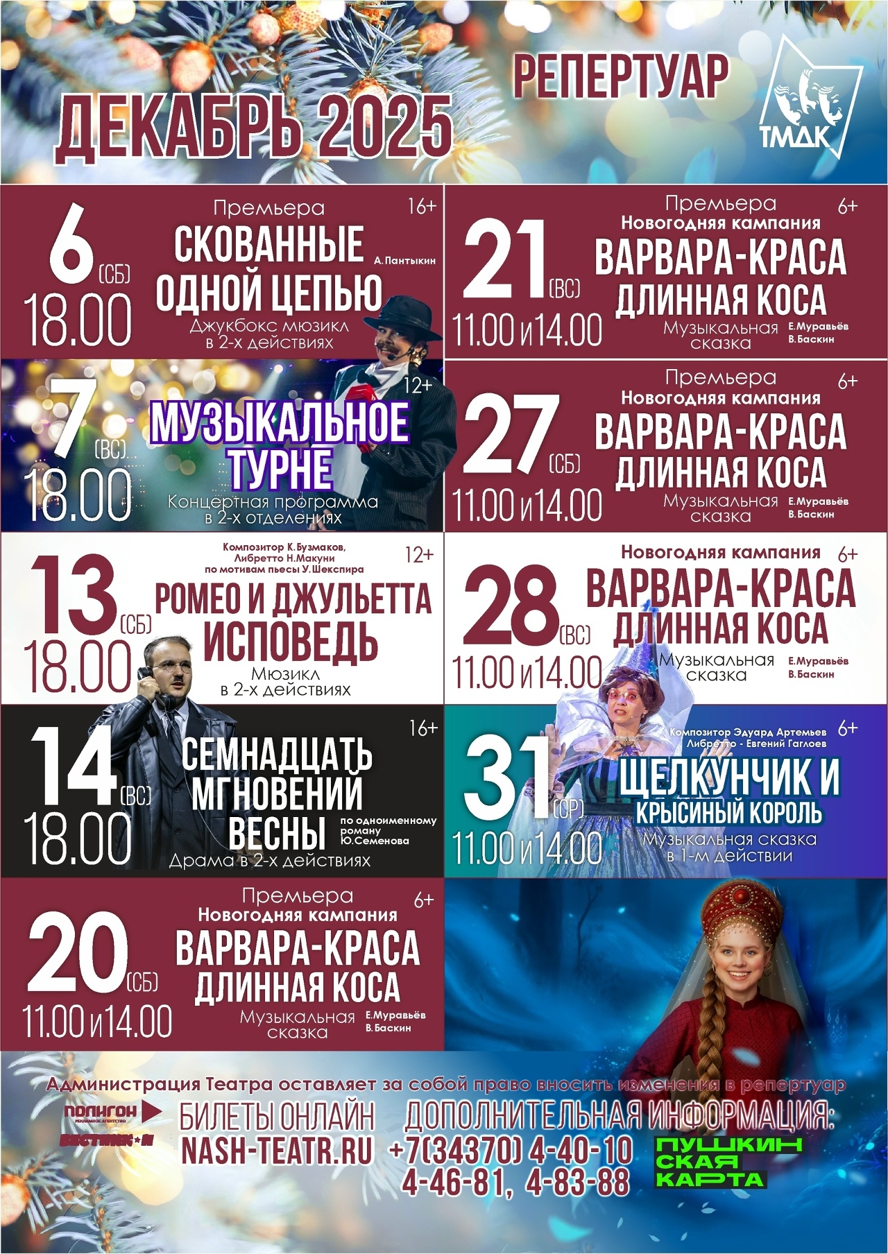 Слышите запах мандаринов? Уже наблюдаете тут и там гирлянды, развешанные по городу? Это явно неспроста! Совсем скоро наступит зима и приятные хлопоты. А вместе с этим мы спешим порадовать вас декабрьским репертуаром! ⭐