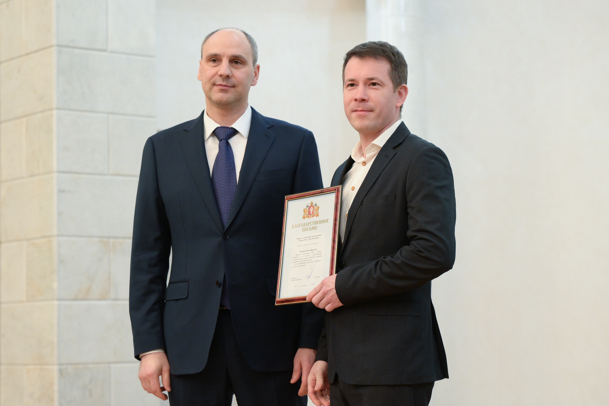 Награду директору предприятия ООО «Радиосистемы» Антону Пашкову вручил Глава Среднего Урала Денис Паслер в рамках встречи с журналистами региона, посвященной Всероссийскому Дню печати.