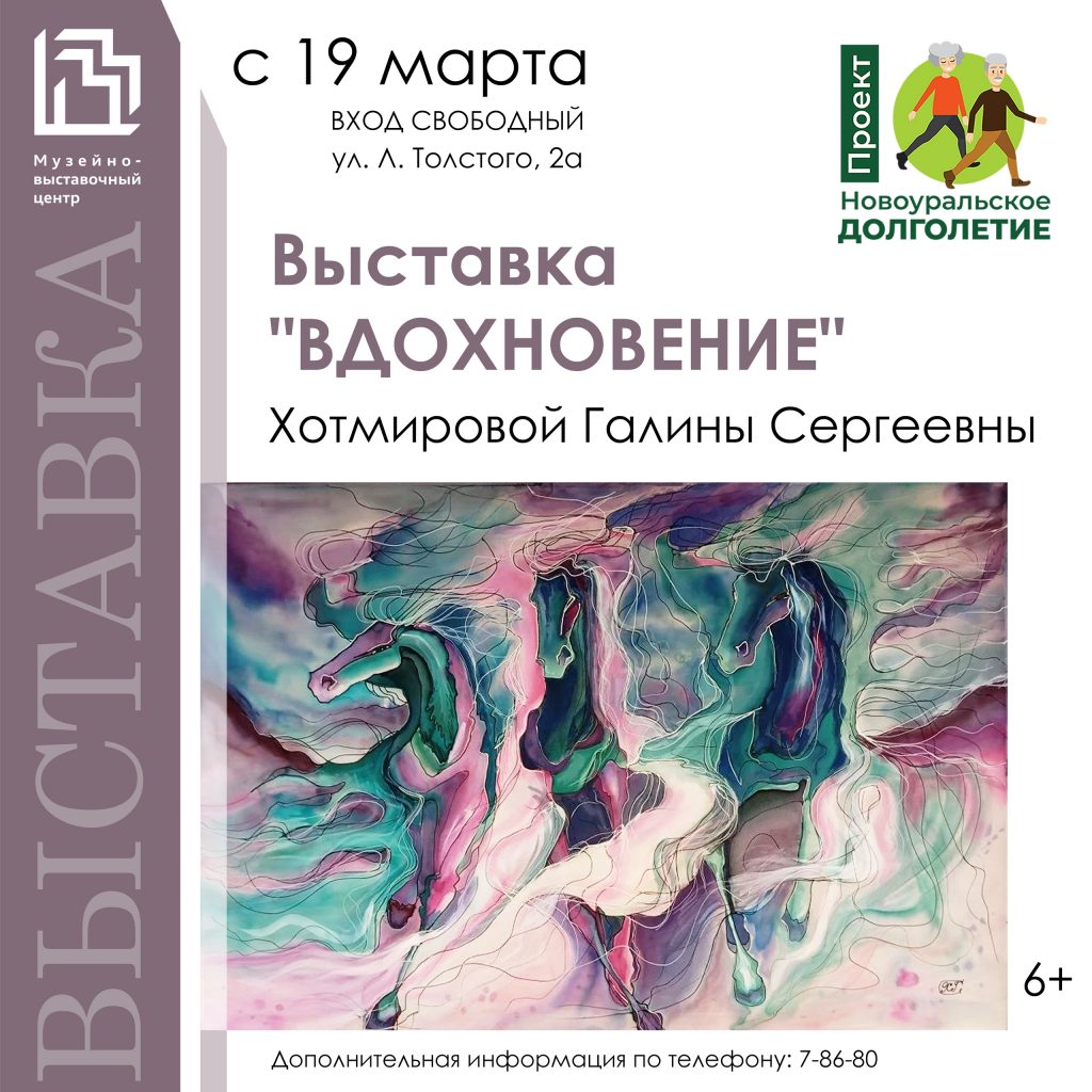 «Живопись пришла в мою жизнь после выхода на пенсию — и стала настоящим открытием!» — именно так о своём творчестве говорит Хотмирова Галина Сергеевна, чья выставка картин открывается в Музейно-выставочном центре с 19 марта!
