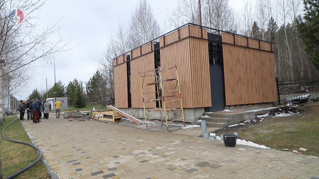 Снаружи здание уже обшито декоративными панелями. Внутри строители монтируют электрику и производят отделочные работы.